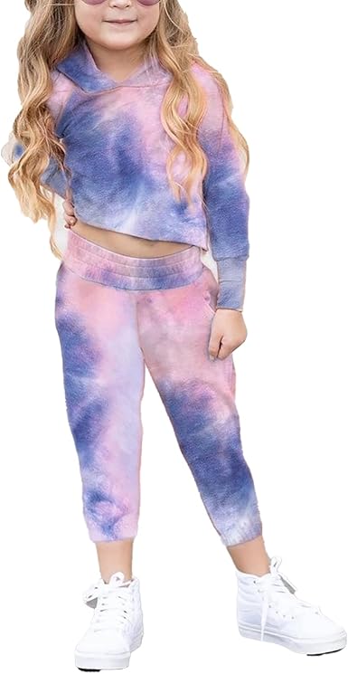 Kid Baby Girl Tie Dye Outfit Crop Top Jogging Pants Hoodie Tracksuit Sweatsuit Sport Clothes Clothing Shoes Jewelry